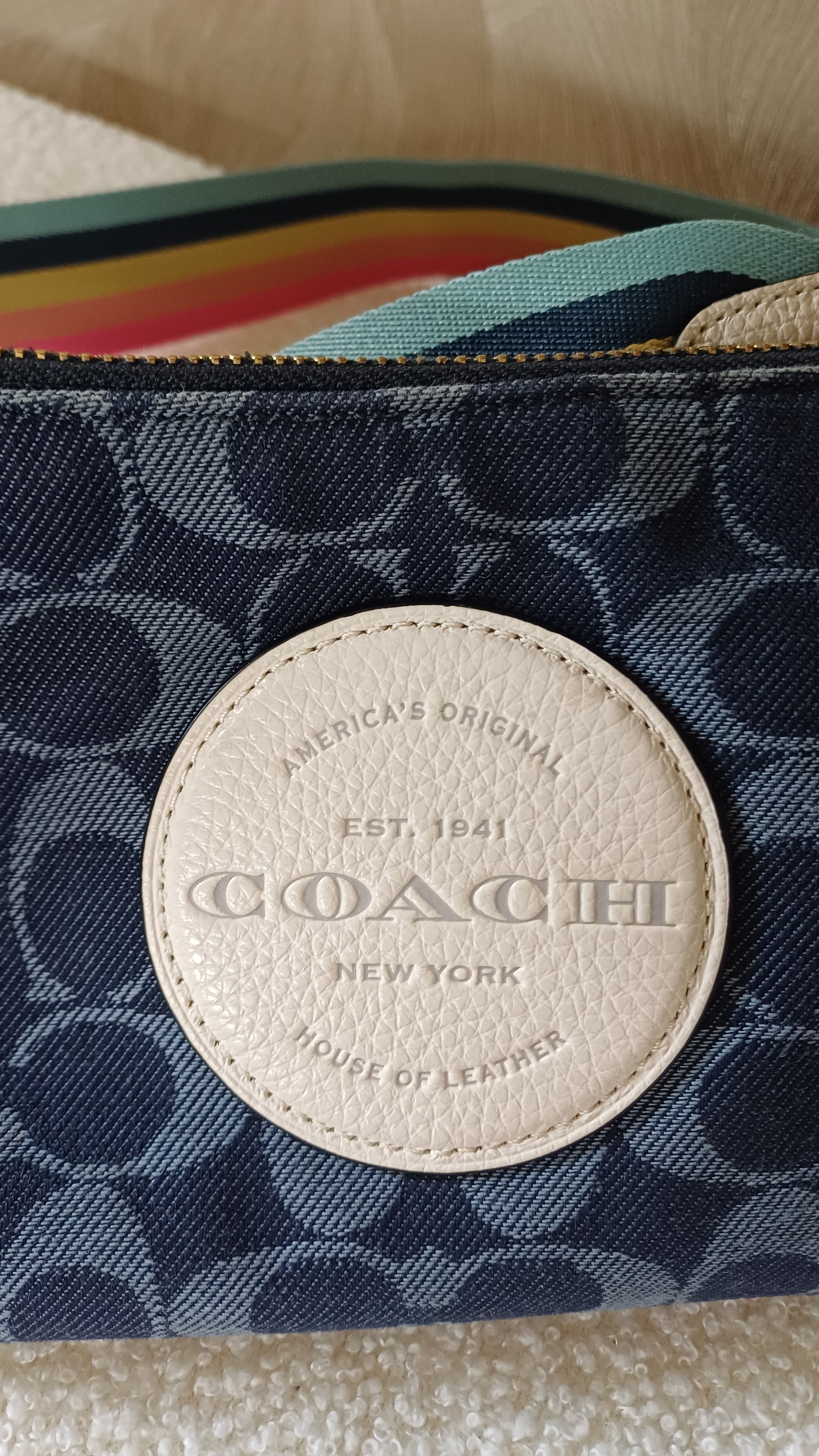 Maak een stijlvol statement met de Coach Dempsy handtas in trendy denim blauw. De speelse regenboogkleurige strap voegt een vrolijke twist toe en maakt deze tas perfect om crossbody te dragen – comfortabel én opvallend. Compact, chic en ideaal voor elke dag! De tas is in nieuwstaat en komt zonder dustbag of doos.